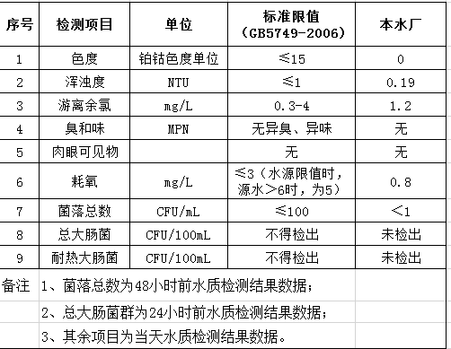先生店水廠2019年10月11日出廠水水質(zhì)公告