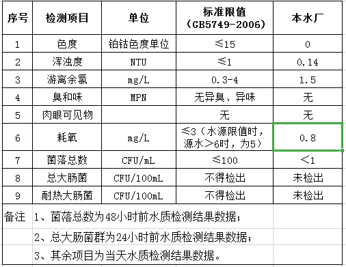 先生店水廠2019年10月22日出廠水水質(zhì)公告