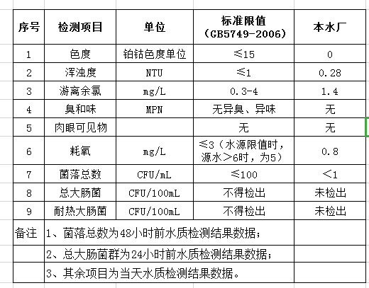 先生店水廠2019年11月3日出廠水水質(zhì)公告