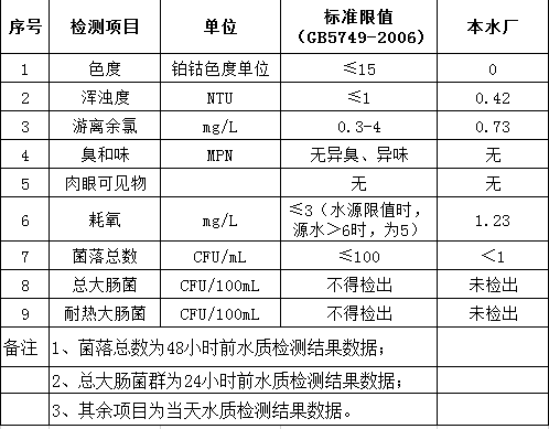 先生店水廠2019年11月12日出廠水水質(zhì)公告