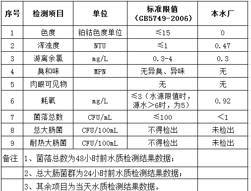 先生店水廠2019年11月15日出廠水水質(zhì)公告