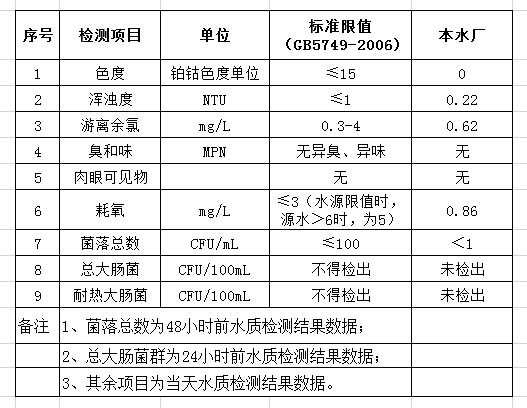 先生店水廠2019年11月21日出廠水水質(zhì)公告