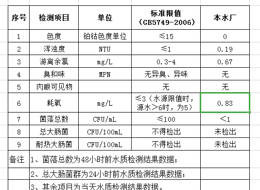 先生店水廠2019年11月27日出廠水水質(zhì)公告
