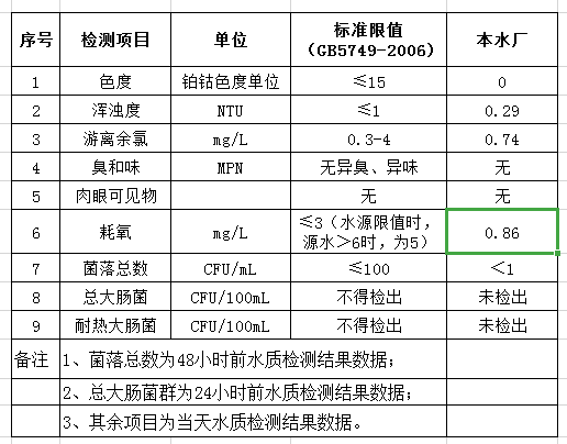 先生店水廠2019年11月30日出廠水水質(zhì)公告