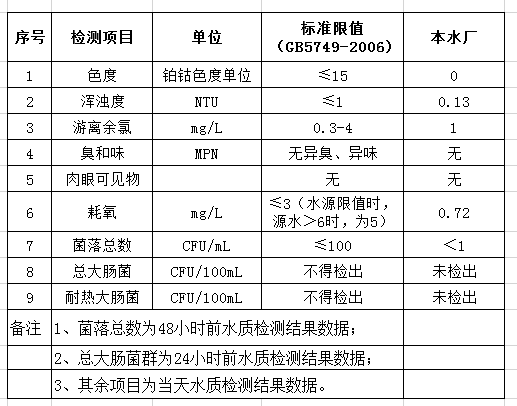 先生店水廠2019年12月12日出廠水水質(zhì)公告