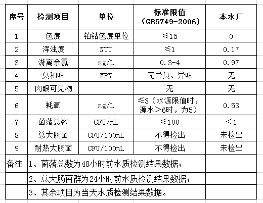 先生店水廠(chǎng)2019年12月17日出廠(chǎng)水水質(zhì)公告