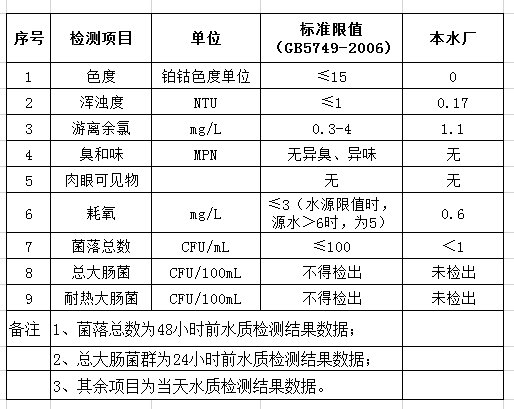 先生店水廠2019年12月21日出廠水水質(zhì)公告