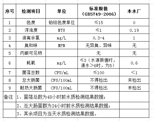 先生店水廠2019年12月31日出廠水水質(zhì)公告