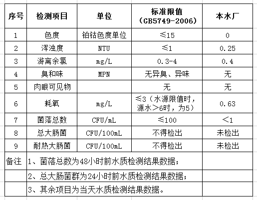 先生店水廠2020年1月3日出廠水水質(zhì)公告