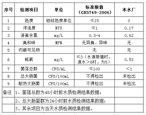 先生店水廠(chǎng)2020年1月8日出廠(chǎng)水水質(zhì)公告
