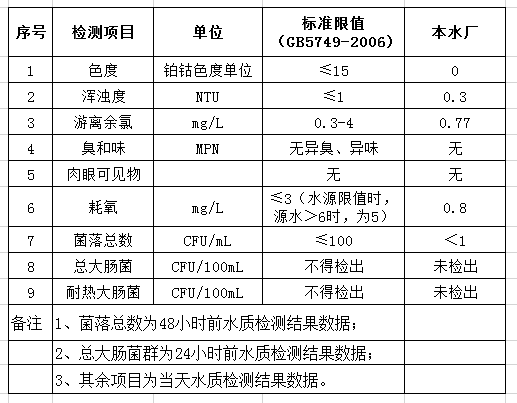 先生店水廠2020年1月16日出廠水水質(zhì)公告