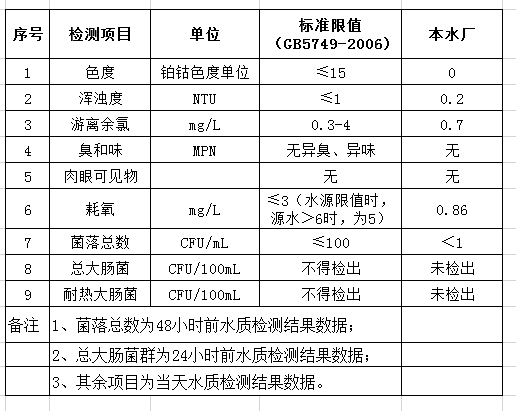 先生店水廠2020年3月10日出廠水水質(zhì)公告