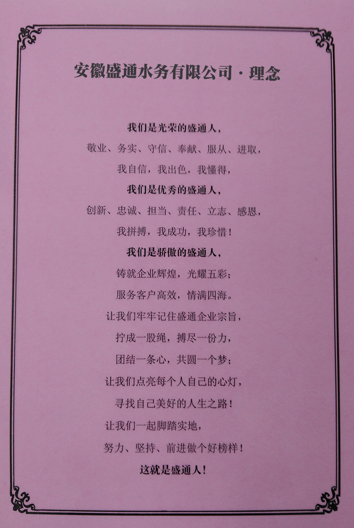 把服務(wù)當(dāng)成事業(yè)來(lái)做;把管理當(dāng)學(xué)問(wèn)來(lái)看;把問(wèn)題當(dāng)機(jī)遇來(lái)對(duì);讓民生供水成為“永恒的事業(yè)